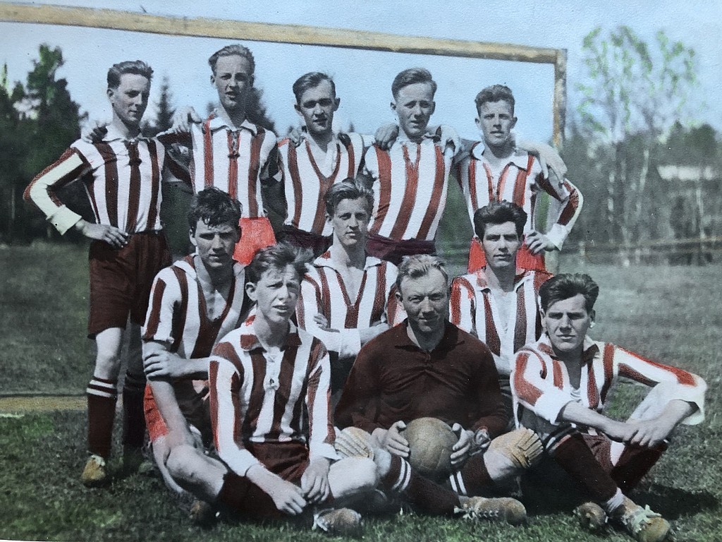 Lagbild från Pukebergs IP aug 1937. Matchen spelades mot Bergkvara och slutade med 2-0 seger.